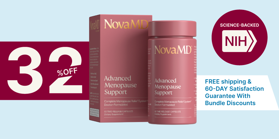 As a valued new NovaMD Advanced Menopause Support customer, you'll enjoy an up to 32% OFF discount on your first purchase, plus FREE shipping (worth $4.95).